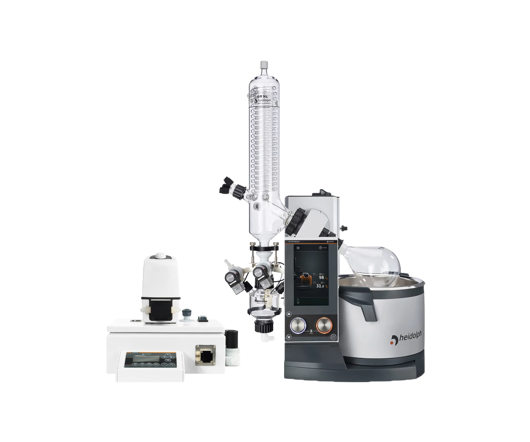 Heidolph offer you an opportunity to optimize your functional sequences, save costs and at the same time multiply your daily throughput. Dealing with large volumes does not have to be time-consuming: The Hei-VOLUME Distimatic module allows you to fully automate the filling and emptying of your Heidolph benchtop or large-scale rotary evaporator.